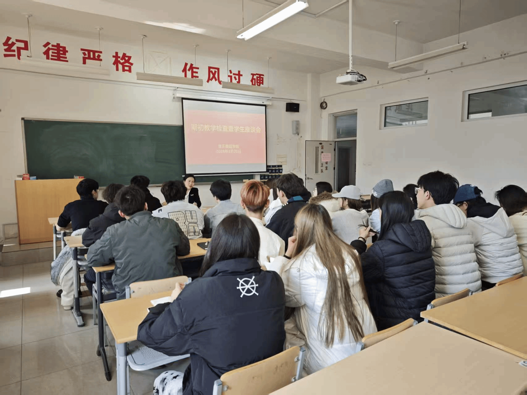 为全面掌握新学期教学运行状况,畅通师生沟通渠道,切实提升育人服务质量,3月20日,我院于5号教学楼分设三个会场,同步召开新学期初教学检查暨学生座谈会。学院党委书记段永慧、党委副书记郝彦荣、党委副书记史宏分别出席各会场,与学生代表面对面交流,广泛听取学习保障、教学设施、校园生活等方面意见建议。座谈会现场氛围热烈融洽,学生代表结合学习生活踊跃发言、积极建言。